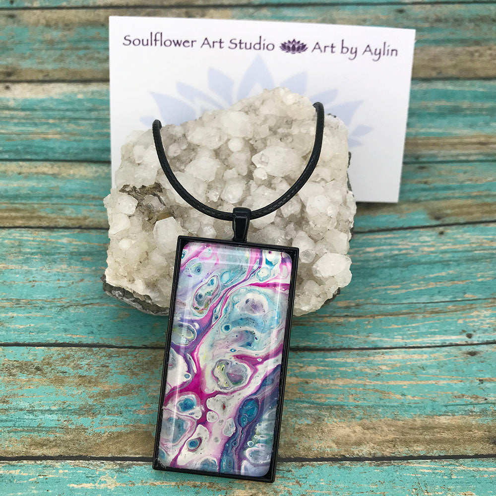 Each piece of jewelry is handmade with love and is unique with it's own original abstract artwork inside of it.